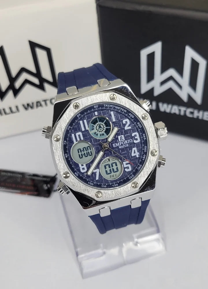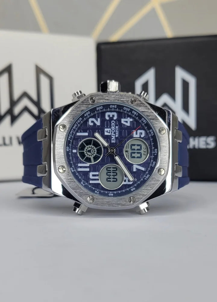 Emporio Stylish Blue Sports Watch Dual Display SP-005 | Bold Style, Smart Performance